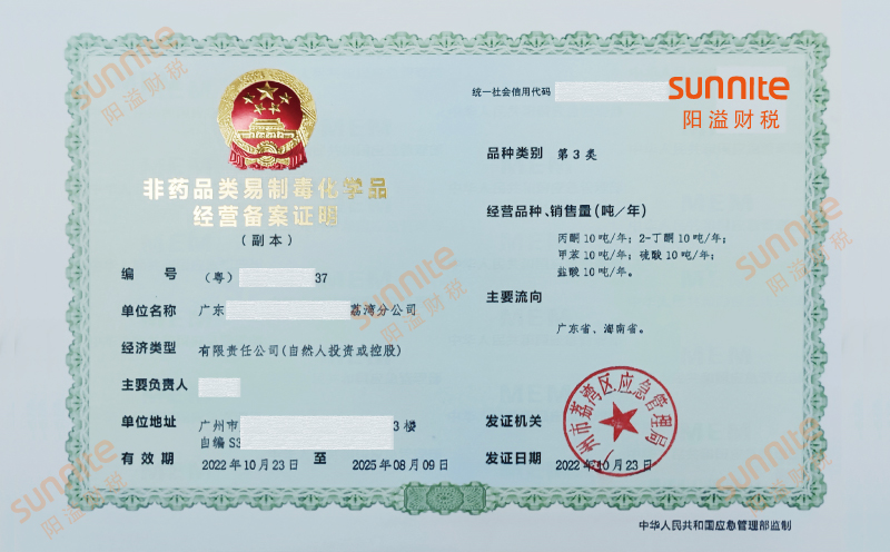 非藥品類易制毒化學(xué)品經(jīng)營許可證